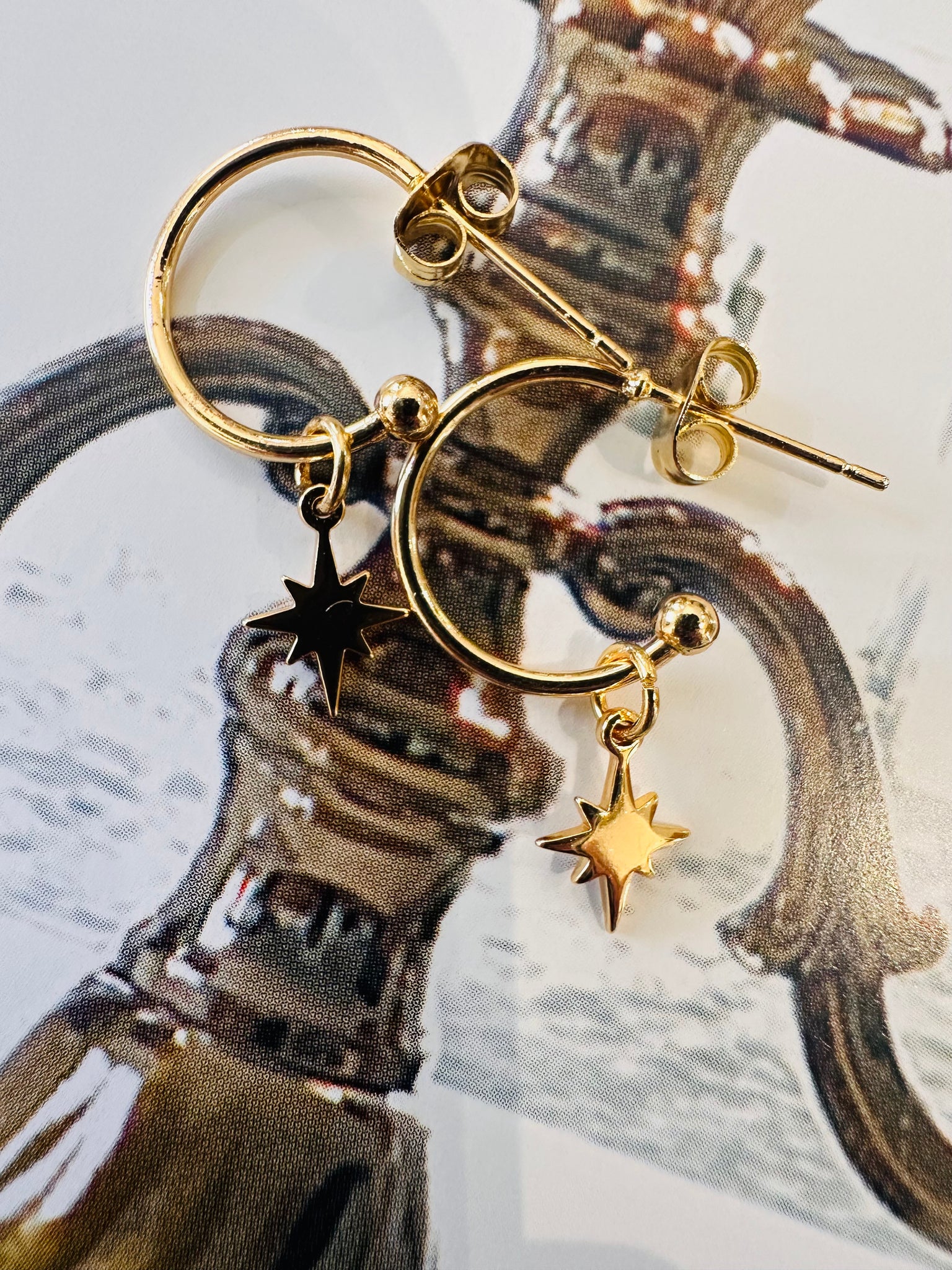 Discover timeless elegance with the SUPER STAR gold hooks, a customer favourite from DAISY LOURDES BIJOUX. Crafted in luxurious 18k gold played, these hoop-style earrings feature a minimalist star pendant that effortlessly elevates any look. Perfect for everyday wear or special occasions, their refined design and comfortable fit make them an essential addition to your jewellery collection.