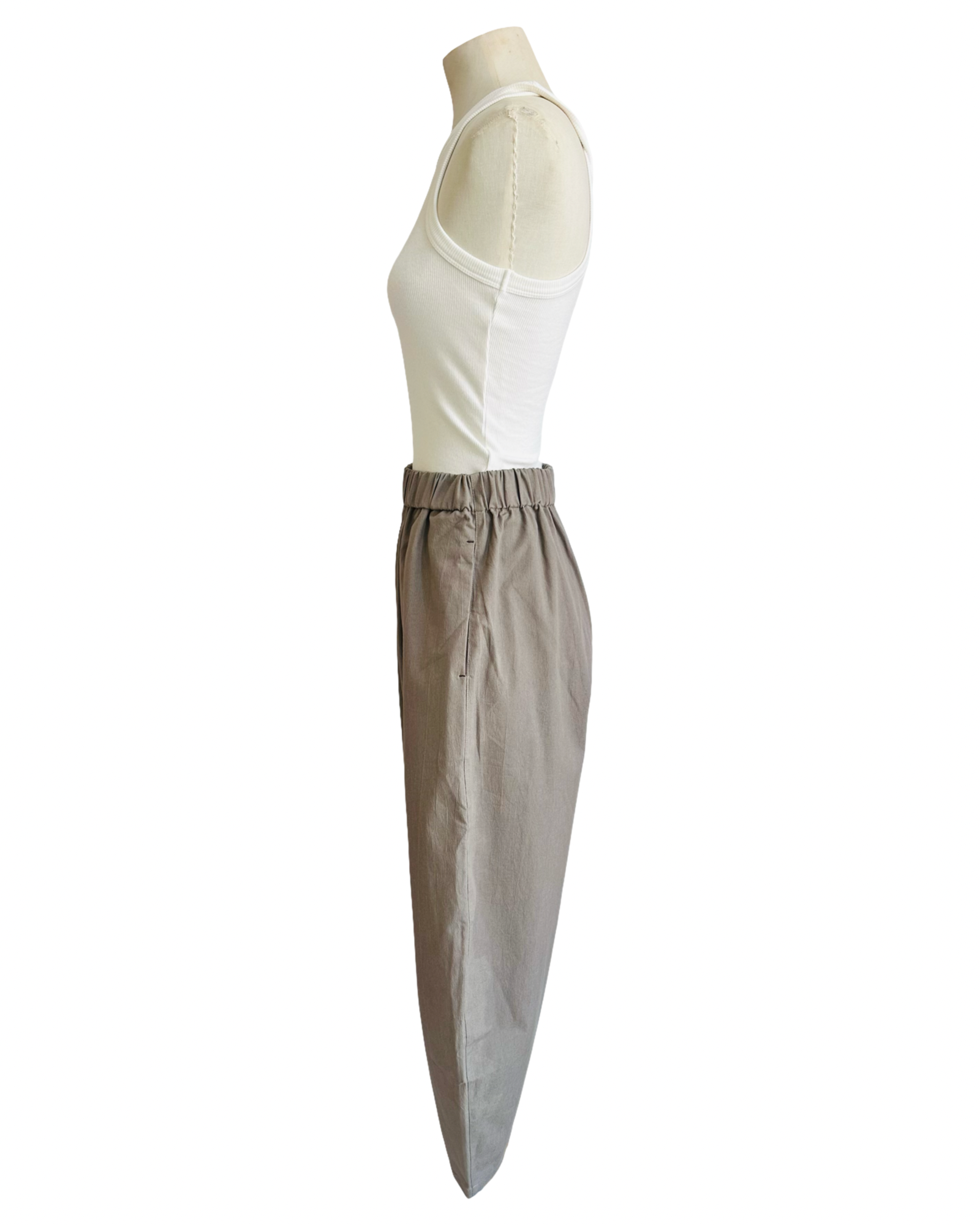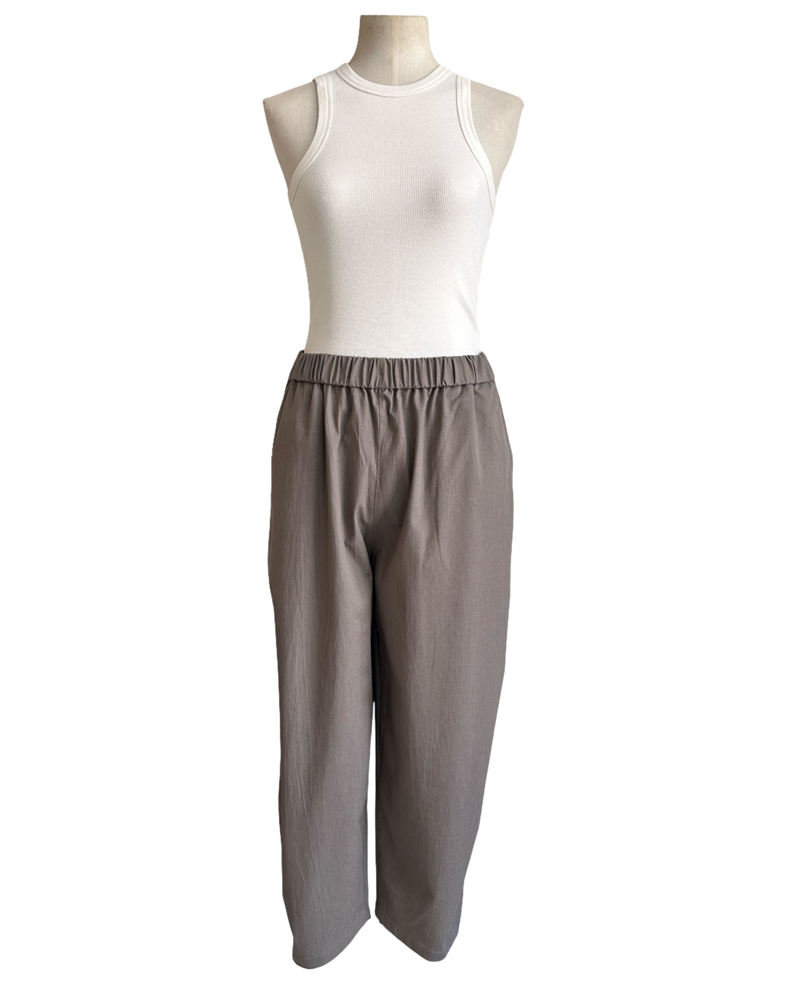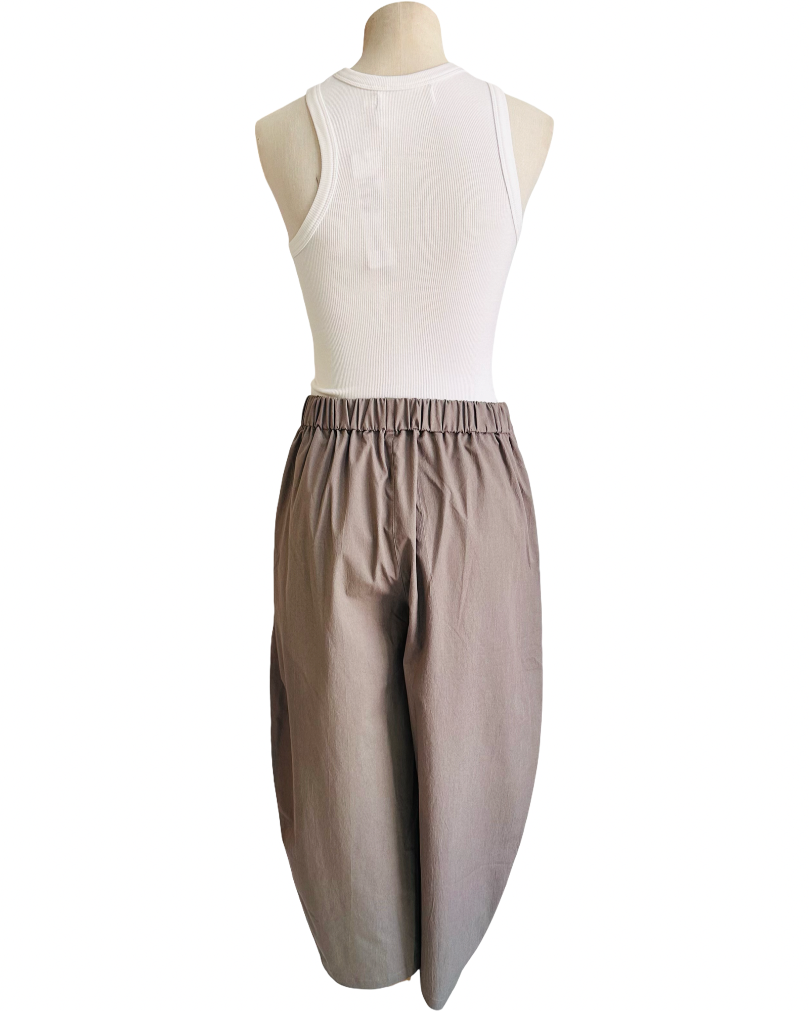 Referencing the new barrel leg style our JEAN PAUL pants have a roomy profile with comfy elastic waistband that sits mid rise. They're tailored from cotton-twill that holds the shape well. Side pockets.