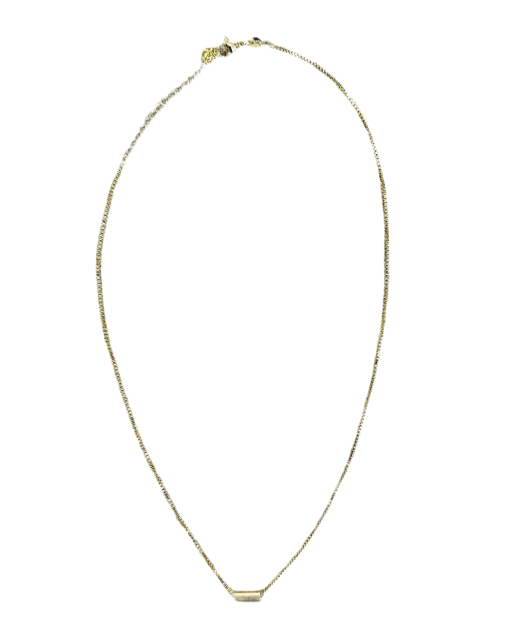 This refined 18k gold tube necklace embodies elegant simplicity with its slender chain and understated centre feature. A timeless piece that speaks volumes through minimalist design, offering subtle luxury for the discerning wearer.